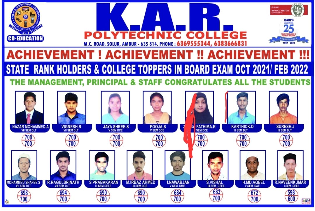 - Academic achievements also featured: Ms. T. Radhika (ECE) scored 699/700 in the April 2014 Board Examination. Ms. A. Ameemulla (Computer Engineering) scored 700/700 in April 2017 Board Examination.